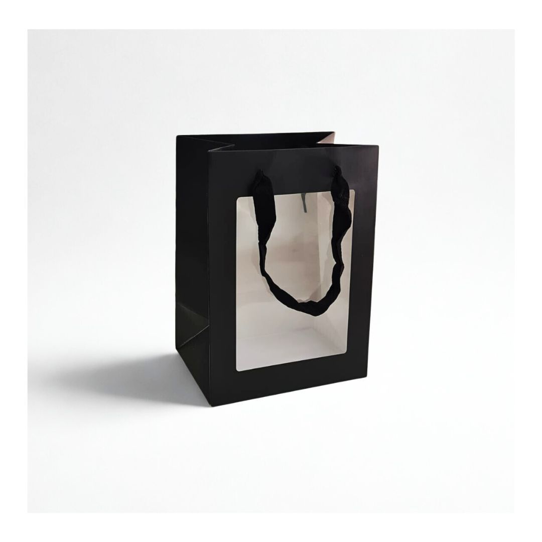 A Sacola de Papel para Presente Preta com Visor é perfeita para qualquer ocasião, oferecendo sofisticação e versatilidade. Seu design minimalista permite personalização ou uso em sua forma original, garantindo um toque elegante para embalar presentes.