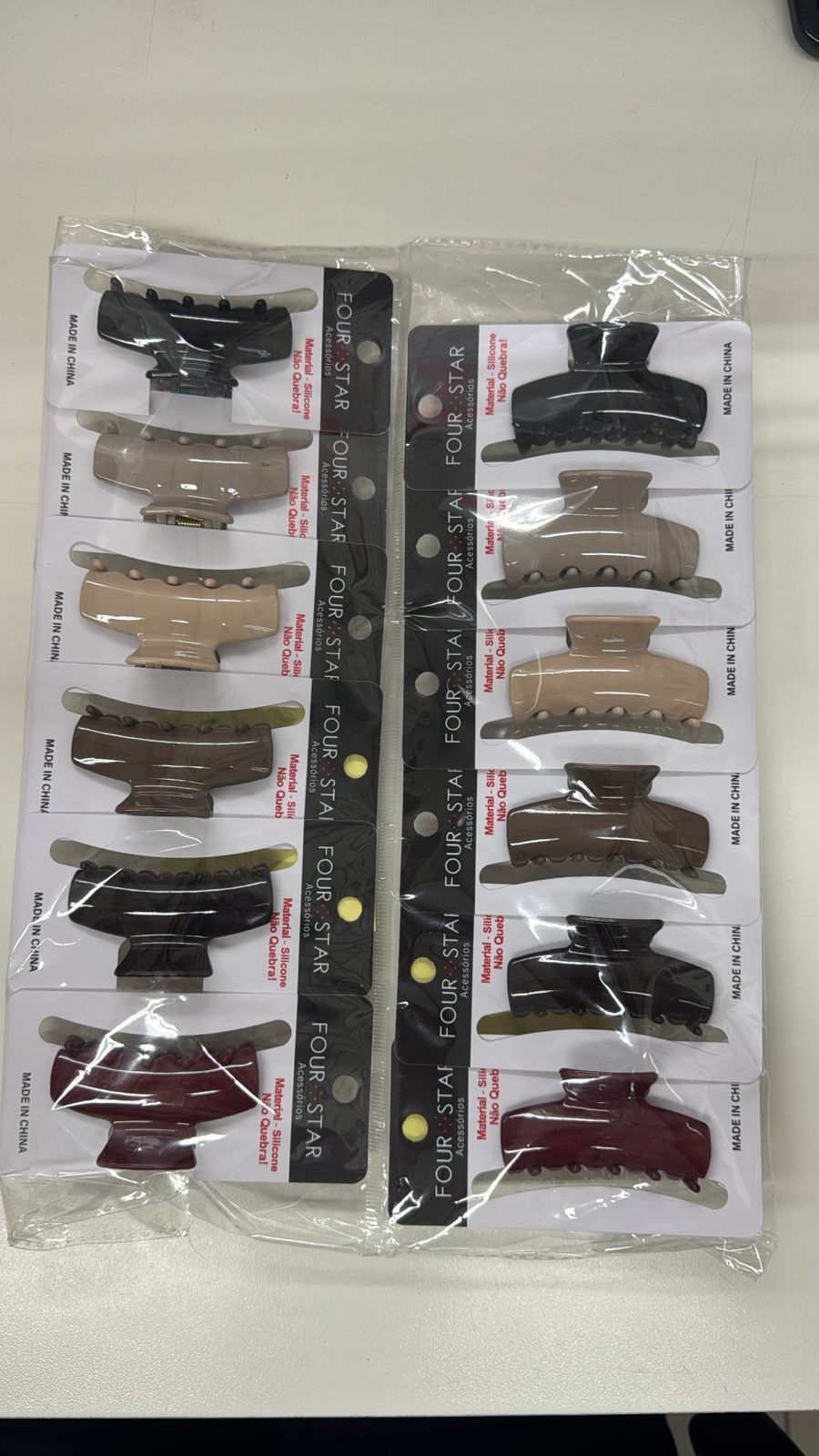 Piranha de Silicone Inquebrável para Cabelo - 6 cm - Pacote com 12 Peças - Four Star